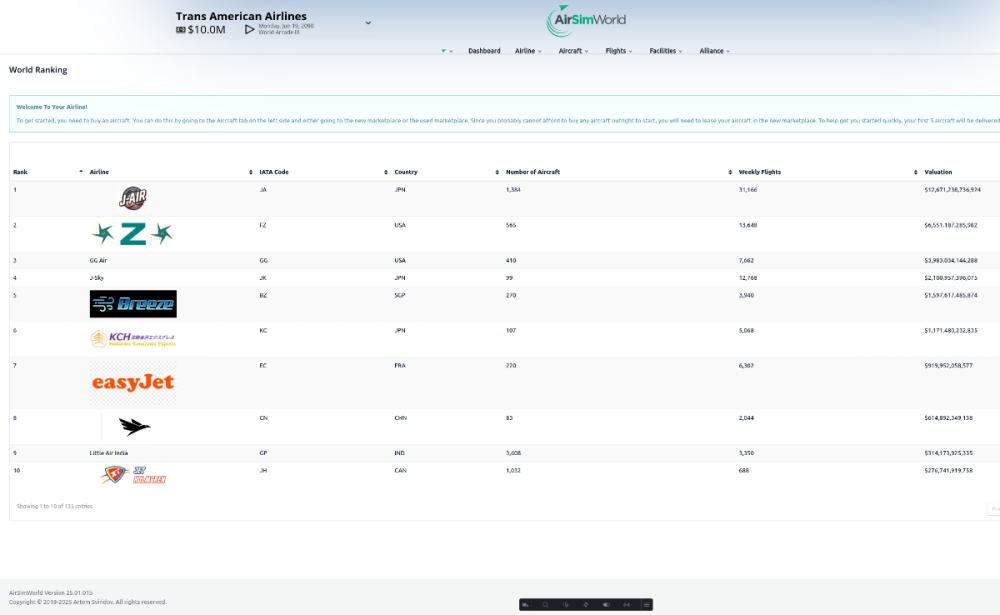 1. I am hesitant to add anything that might encourage spamming flights as it goes against the direction in which I would like the sim to go (trying to add more features around non-flight operations to further add depth to the game that way), however I do plan to add a way to 'move' flights allowing you to more easily replace aircraft/upgrade fleet. 2. There is a way to extend lease through the debts screen, I don't necessarily love the way in which the system works (I was trying to be clever when creating it but it ended up not turning out the way I intended) so I do plan to rework it at some point but it is low on my priority list. 3. I'm not in theory opposed to an eternal world though do want to be cautious of not being exclusionary to new players. Statistically people who join the sim when a world is fresh are more likely to stick around, hence I do want to make sure there always is a fresh world to join. This is one of the reasons why typical worlds were shortened to last around 3 months IRL. For a longer term world, Arcade remains to be running for approximately 6 months as a longer term option. 4. The biggest issue with this is the time commitment involved with research and manual data entry, I do plan to crowd-source this which is one of the things I'm working on.